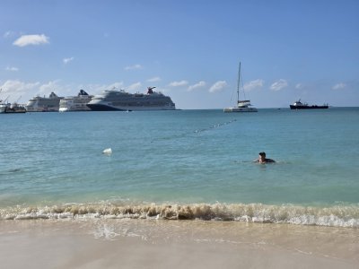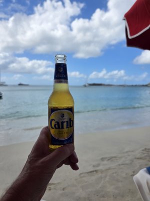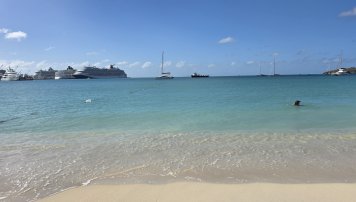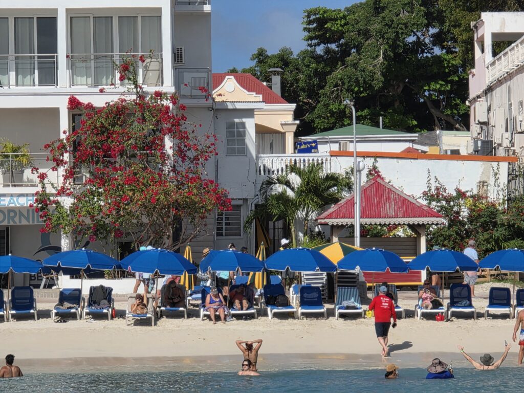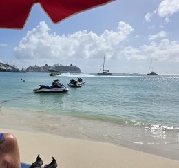 We had been to St Marten in December and found if we took a bus to Phillipsburg we could rent chairs, umbrella and get a six-pack of beer for $25 for a relaxing day.